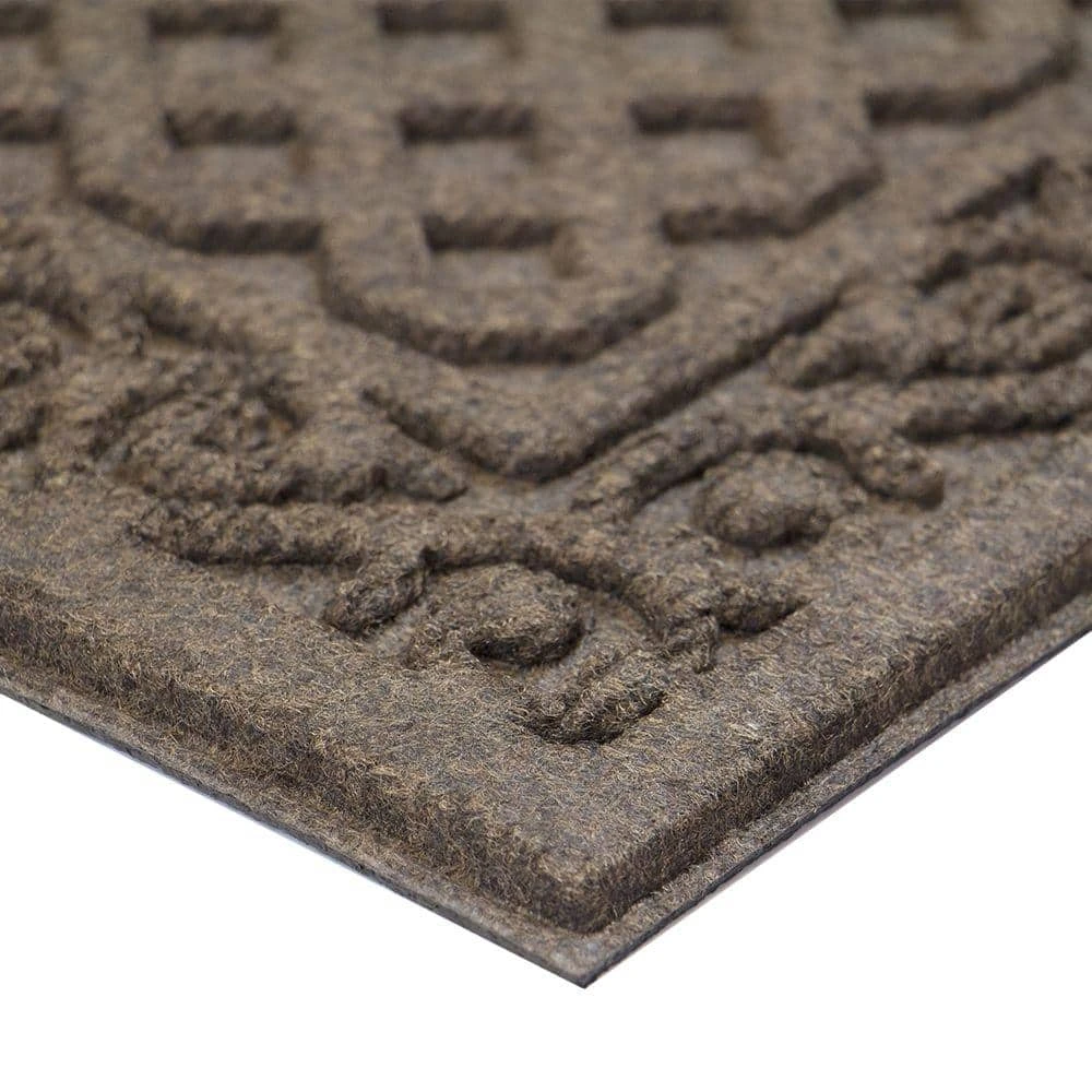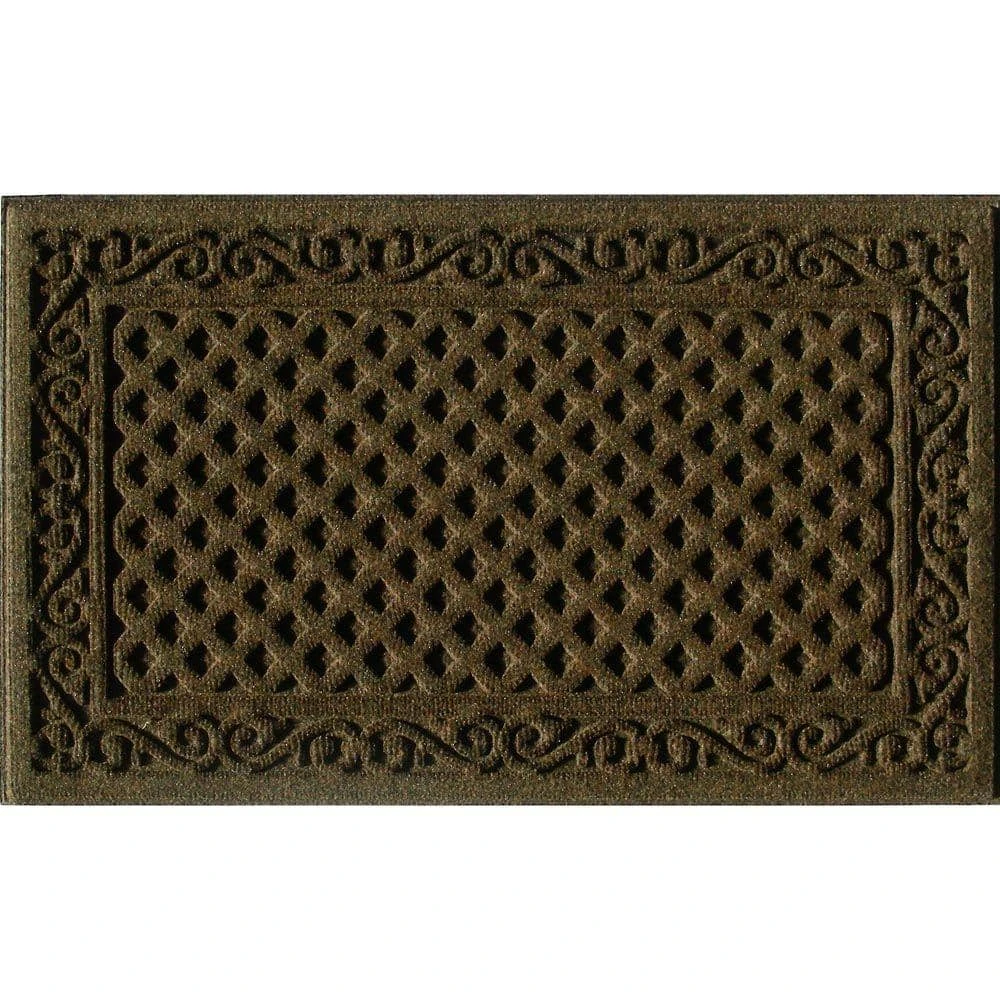 This Brown 18 in. x 30 in. Door Mat in a fashionable Iron lattice design offers a traditional look and adds classic style to any entrance. The mat’s durable synthetic surface helps absorb water and resist stains. The attractive molded lattice surface is designed to scrape dirt and debris off shoes, keeping the dirt outside. This hefty mat stays where you put it and is weather resistant and may be used outside all year long.
