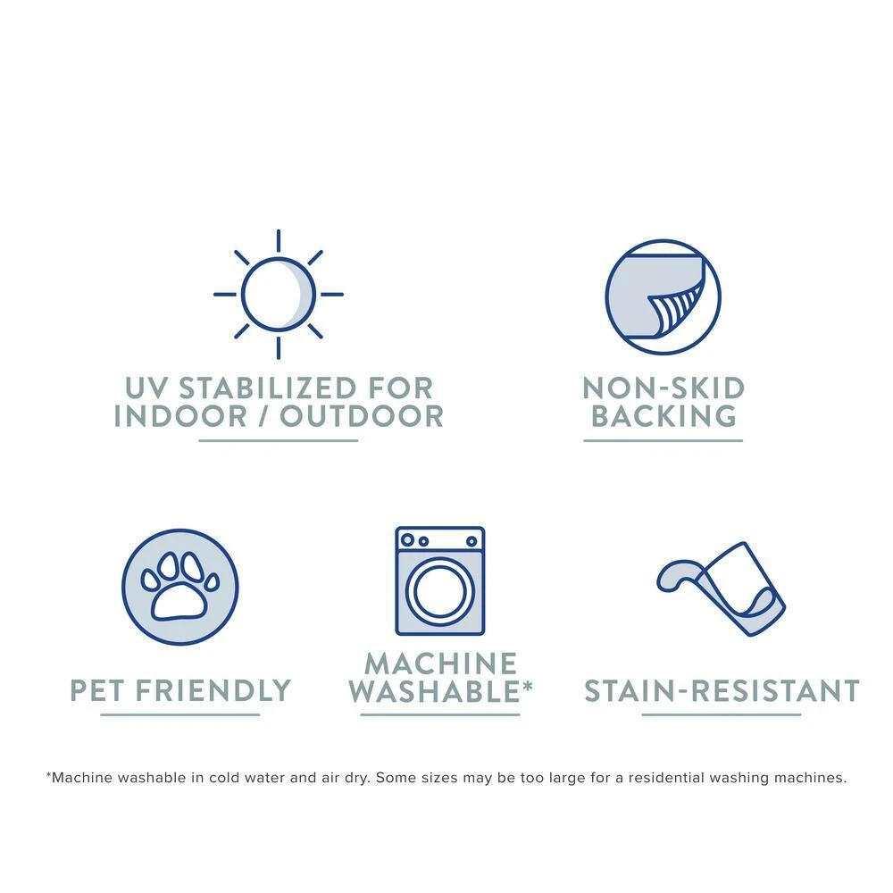 - This durable rug features a zig zag stitch surge on all sides