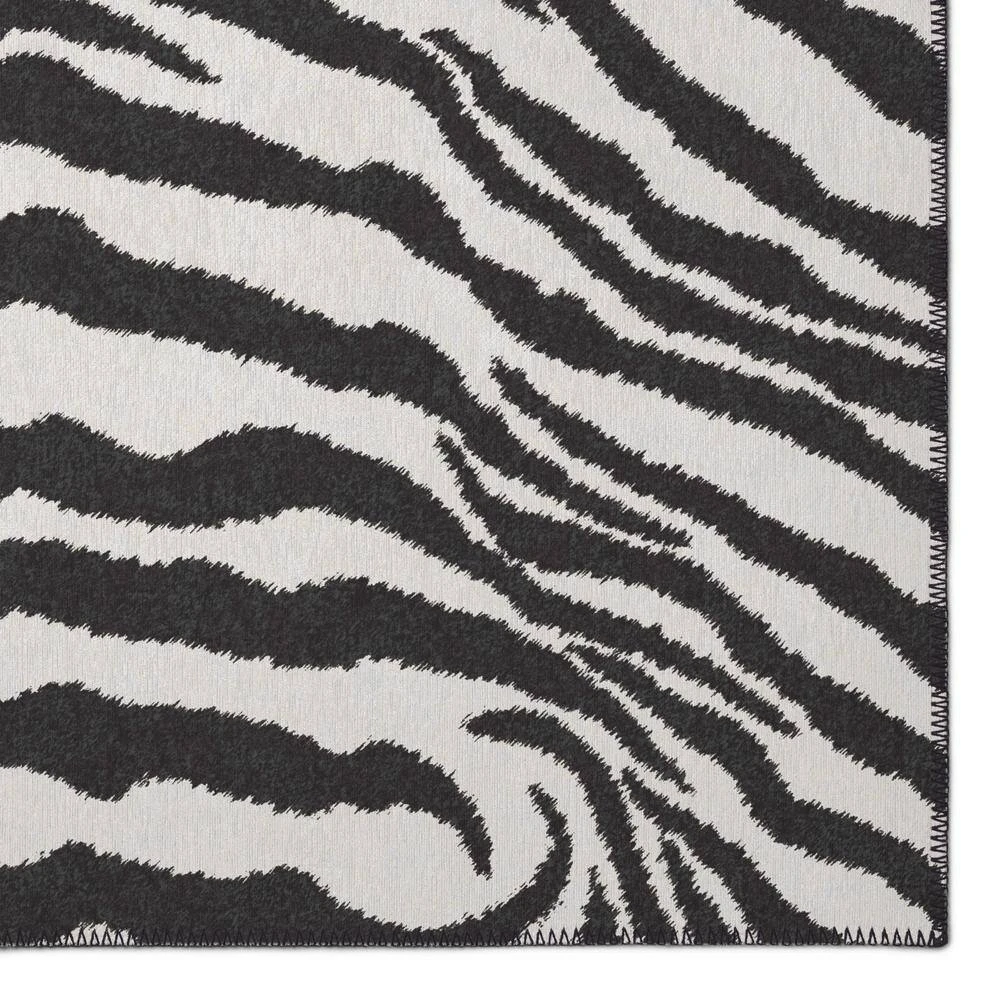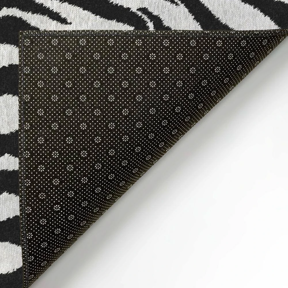 Washable and non-skid, black zebra animal print 10×14 area rug