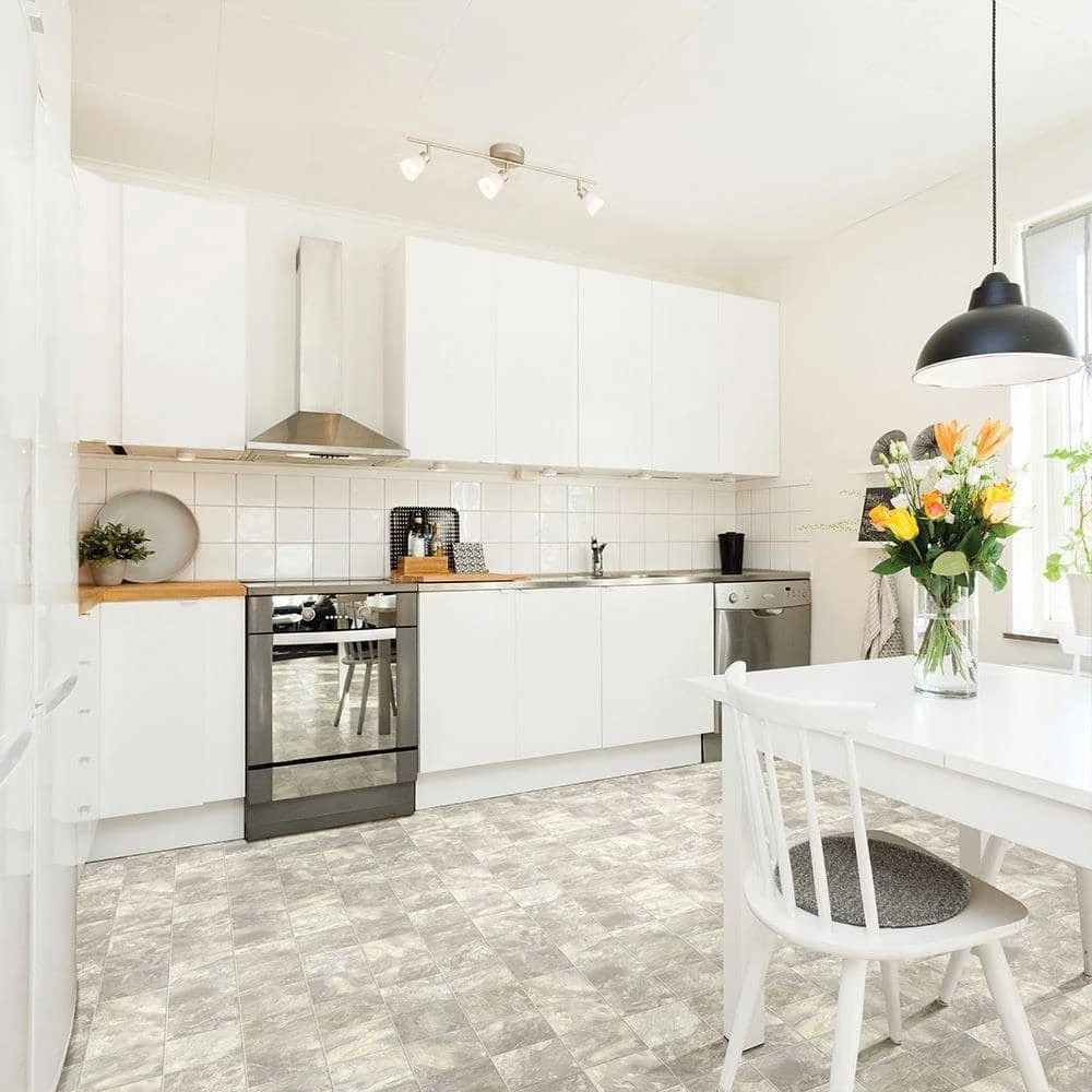 Slate vinyl sheet flooring in a neutral & grey slate tile look